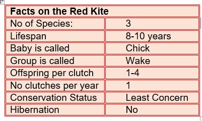 They typically lay about 4 eggs, which take about 30 days to hatch. Wow so different to a horse, 11 months to hatch, well grow inside mum. Both Kite parents raise the chicks, the male searching for and returning with food and the female stays near the nest to protect the young. It takes 10 weeks for the chick to become self-sufficient. A fact I found quite fascinating was that at the mothers signal the chick will “play dead”, they are so successful at this that the approaching predator will ignore them thinking they are dead. How clever is that?
