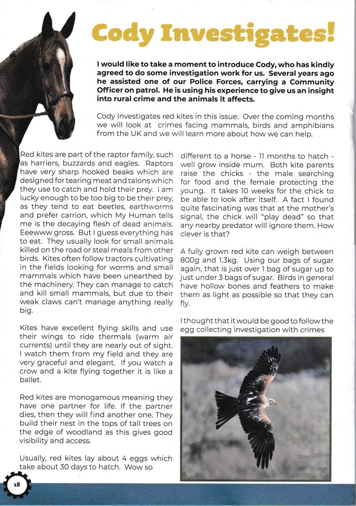 Red Kites are part of the raptor family, such as harriers, buzzards and eagles. Raptors have very sharp hooked beaks, which are designed for tearing meat, and talons which they use to catch and hold their prey. I am lucky enough to be too big for their prey, as they tend to eat beetles, earthworms and prefer Carrion, which my Human tells me is the decaying flesh of dead animals. Eeewww gross.